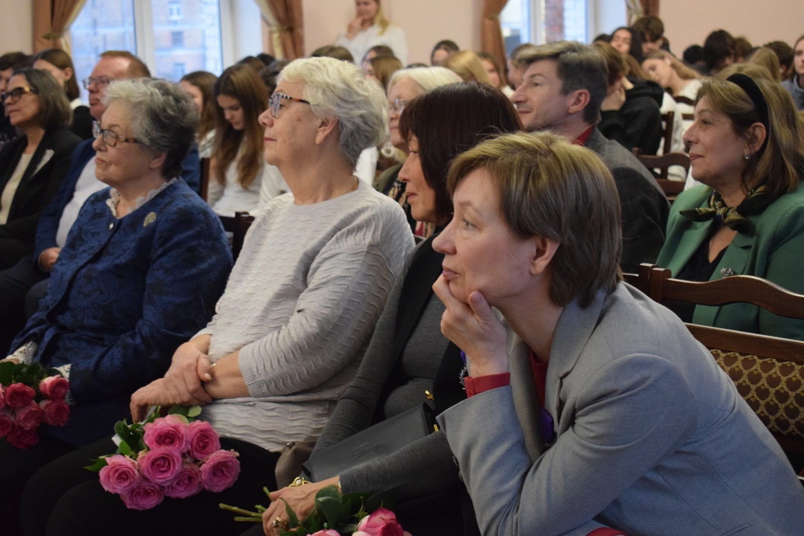 Поэтому в актовом зале нашей школы сегодня не только педагоги и сегодняшние школьники. Мы обняли учителей, ЗАСЛУЖЕННЫХ ВЕТЕРАНОВ ПЕДАГОГИЧЕСКОГО ТРУДА. С воспоминаниями о своих учителях поделились ВЫПУСКНИКИ школы 1974, 1980, 1984 годов. 5 выпускников школы прошлых лет сегодня её учителя французского! А сопровождают сегодняшний праздник кадры из советского фильма по повести Валентина Распутина "Уроки Француского"